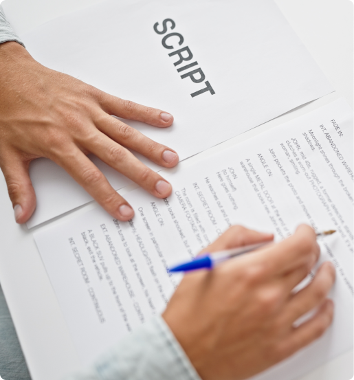 Enroll in our video writing or script writing services, and we'll craft a script from inception. We'll meticulously edit and proofread it, adhering to the widely accepted script format for seamless presentation. Let us bring your vision to life with professional precision and creativity.